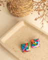 Dipinti a mano, questi orecchini a lobo di forma quadrata celebrano il dinamismo delle forme e l’energia dei colori puri.