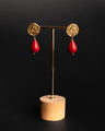 Una goccia rossa pende leggera, come lava che si fa forma e passione.